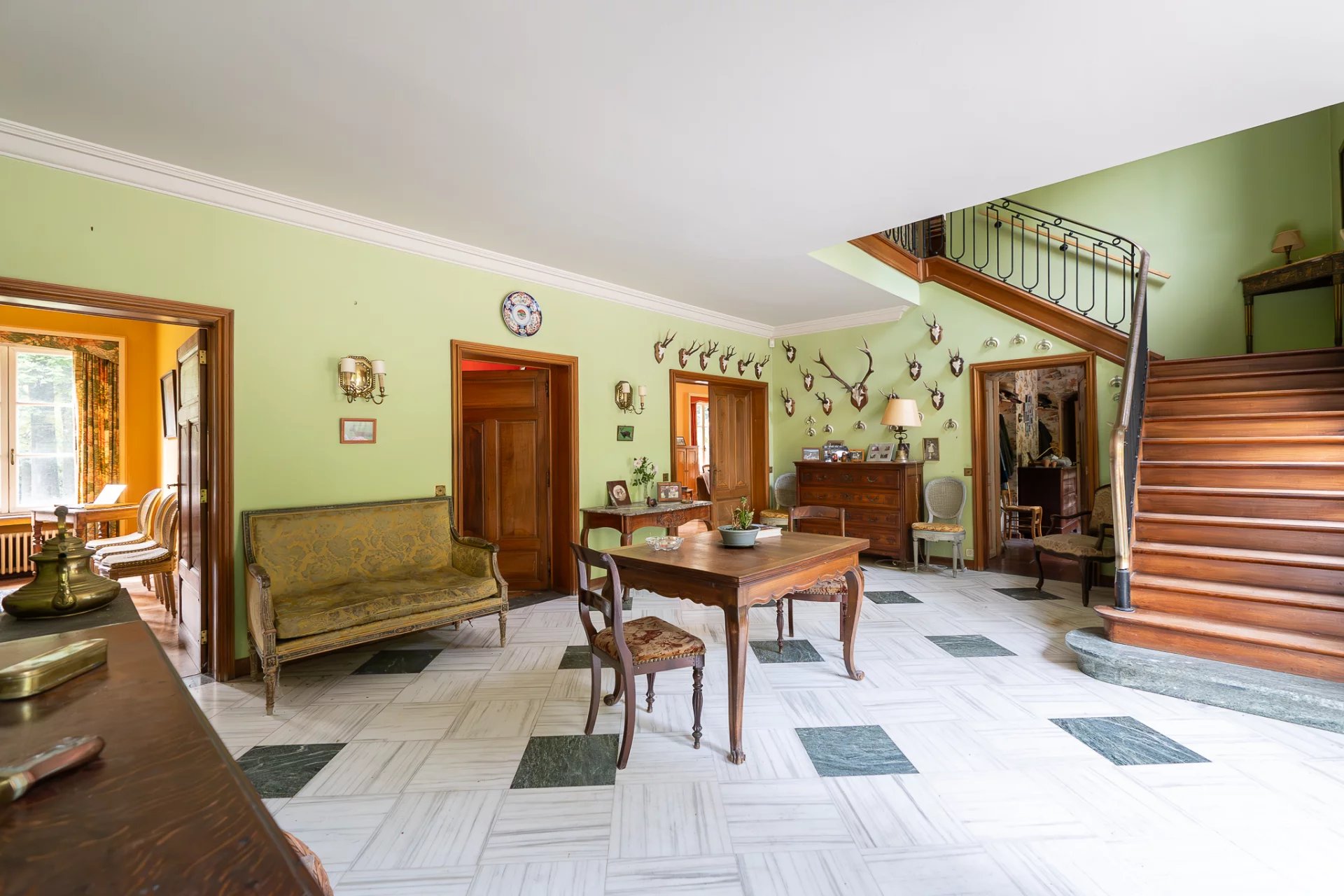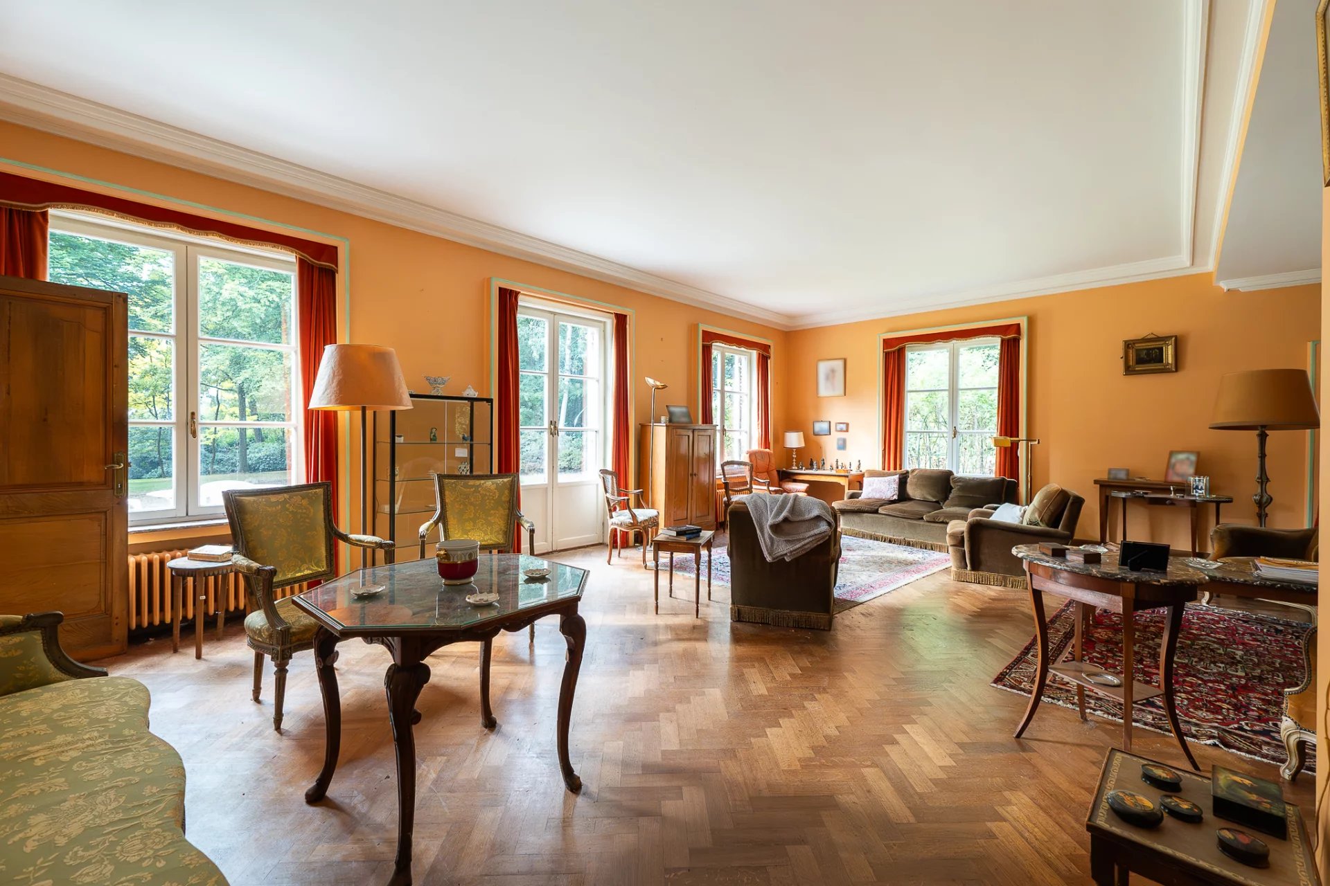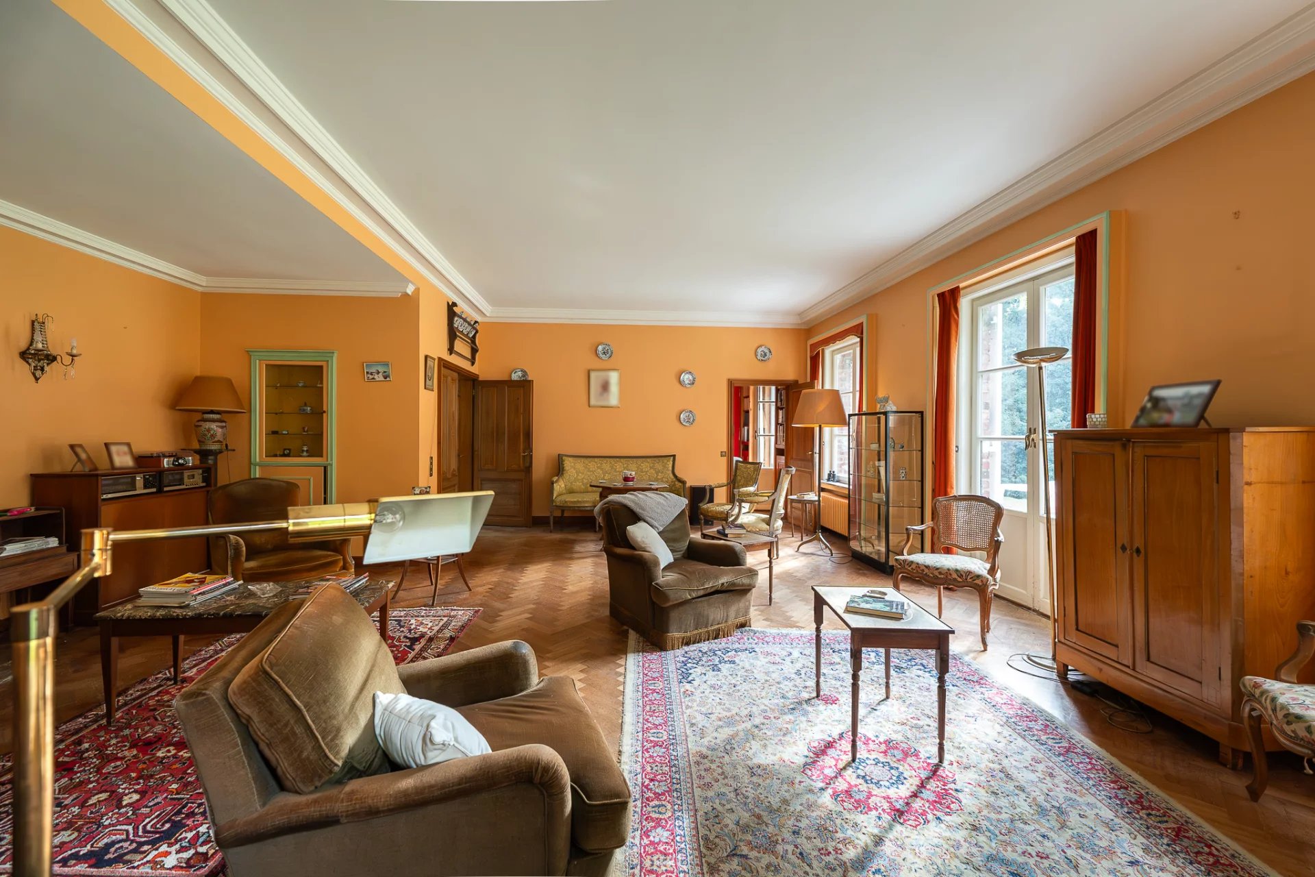 Nichée au cœur d’un parc paysager de plus de 7 hectares, cette propriété rare à Asse incarne l’élégance discrète et le luxe bucolique. Véritable havre de paix, le domaine séduit par son cadre verdoyant, son intimité préservée et son potentiel remarquable. La villa principale, développant environ 628 m² de surface brute, s’organise autour d’un plan en plusieurs ailes, offrant une répartition harmonieuse entre espaces de réception et volumes privés. Sept chambres et quatre salles de bains composent l’étage supérieur, tandis que les salons baignés de lumière naturelle évoquent le charme classique d’une demeure familiale, à réinventer selon les goûts contemporains. Les infrastructures de loisirs – piscine extérieure et court de tennis – s’intègrent parfaitement dans l’environnement paysager, offrant un art de vivre aussi raffiné que décontracté. Alliant authenticité architecturale et volumes généreux, cette propriété offre une base idéale pour un projet de rénovation ambitieux. Toiture à repenser, espaces à redistribuer, possibilités d’extension : les perspectives sont multiples pour redonner vie à ce domaine aux proportions rares.