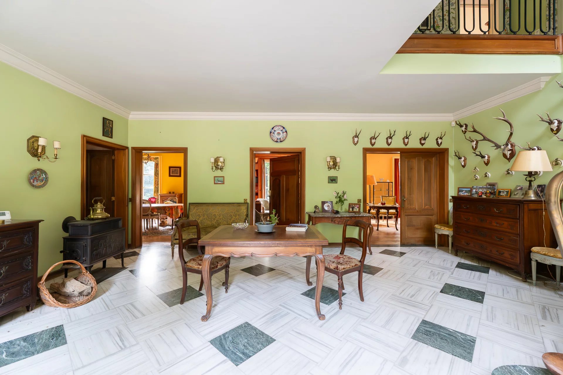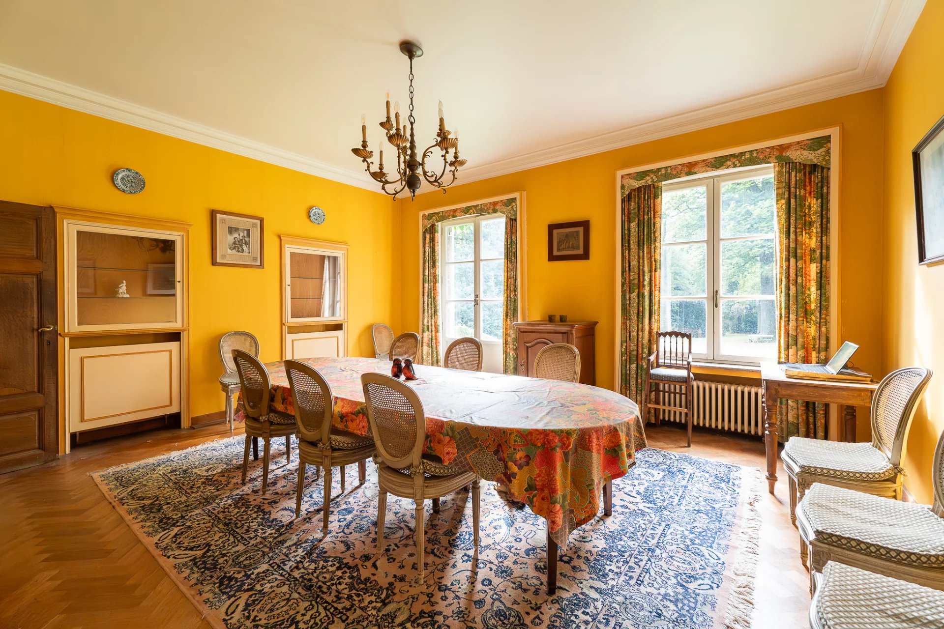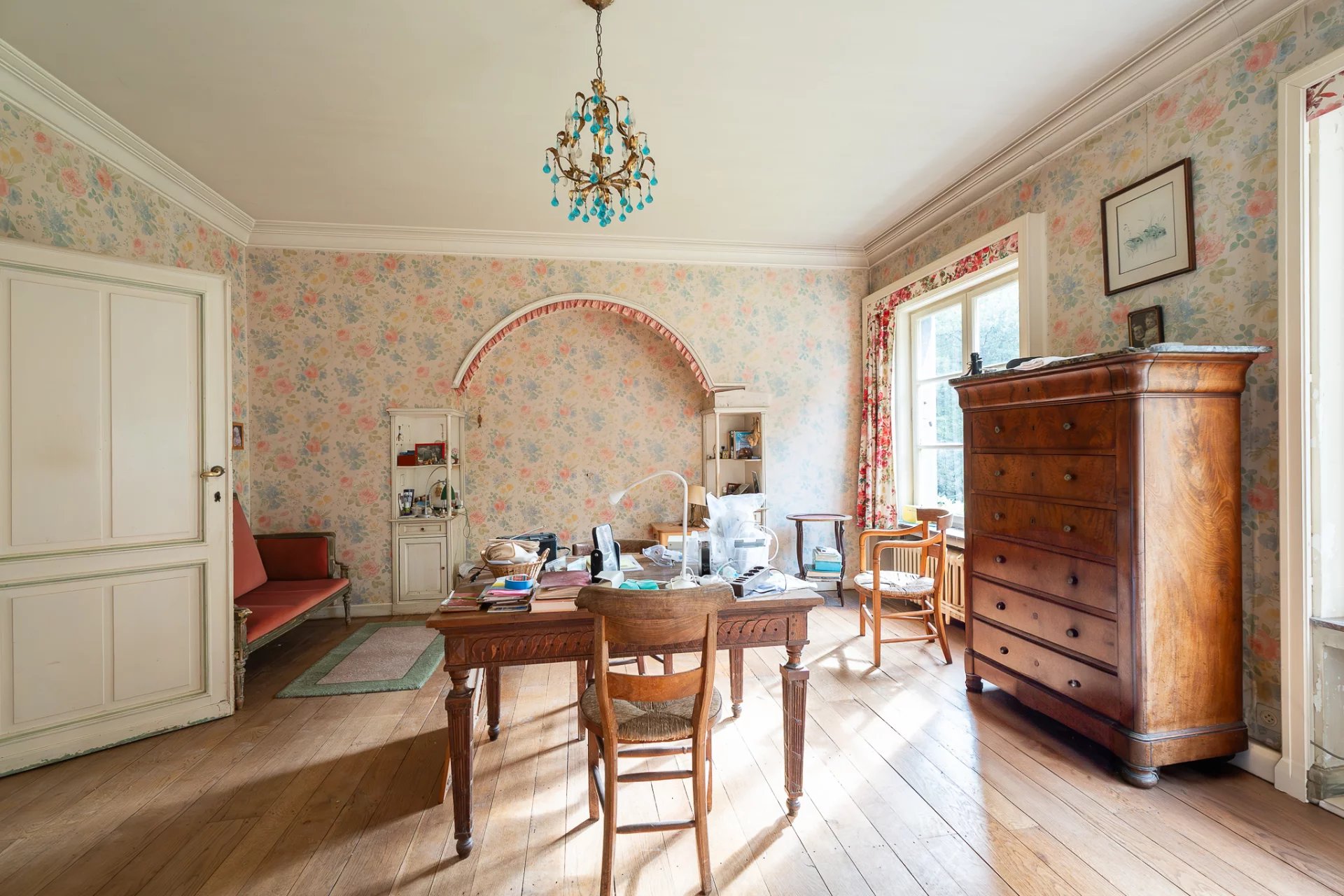 Nichée au cœur d’un parc paysager de plus de 7 hectares, cette propriété rare à Asse incarne l’élégance discrète et le luxe bucolique. Véritable havre de paix, le domaine séduit par son cadre verdoyant, son intimité préservée et son potentiel remarquable. La villa principale, développant environ 628 m² de surface brute, s’organise autour d’un plan en plusieurs ailes, offrant une répartition harmonieuse entre espaces de réception et volumes privés. Sept chambres et quatre salles de bains composent l’étage supérieur, tandis que les salons baignés de lumière naturelle évoquent le charme classique d’une demeure familiale, à réinventer selon les goûts contemporains. Les infrastructures de loisirs – piscine extérieure et court de tennis – s’intègrent parfaitement dans l’environnement paysager, offrant un art de vivre aussi raffiné que décontracté. Alliant authenticité architecturale et volumes généreux, cette propriété offre une base idéale pour un projet de rénovation ambitieux. Toiture à repenser, espaces à redistribuer, possibilités d’extension : les perspectives sont multiples pour redonner vie à ce domaine aux proportions rares.