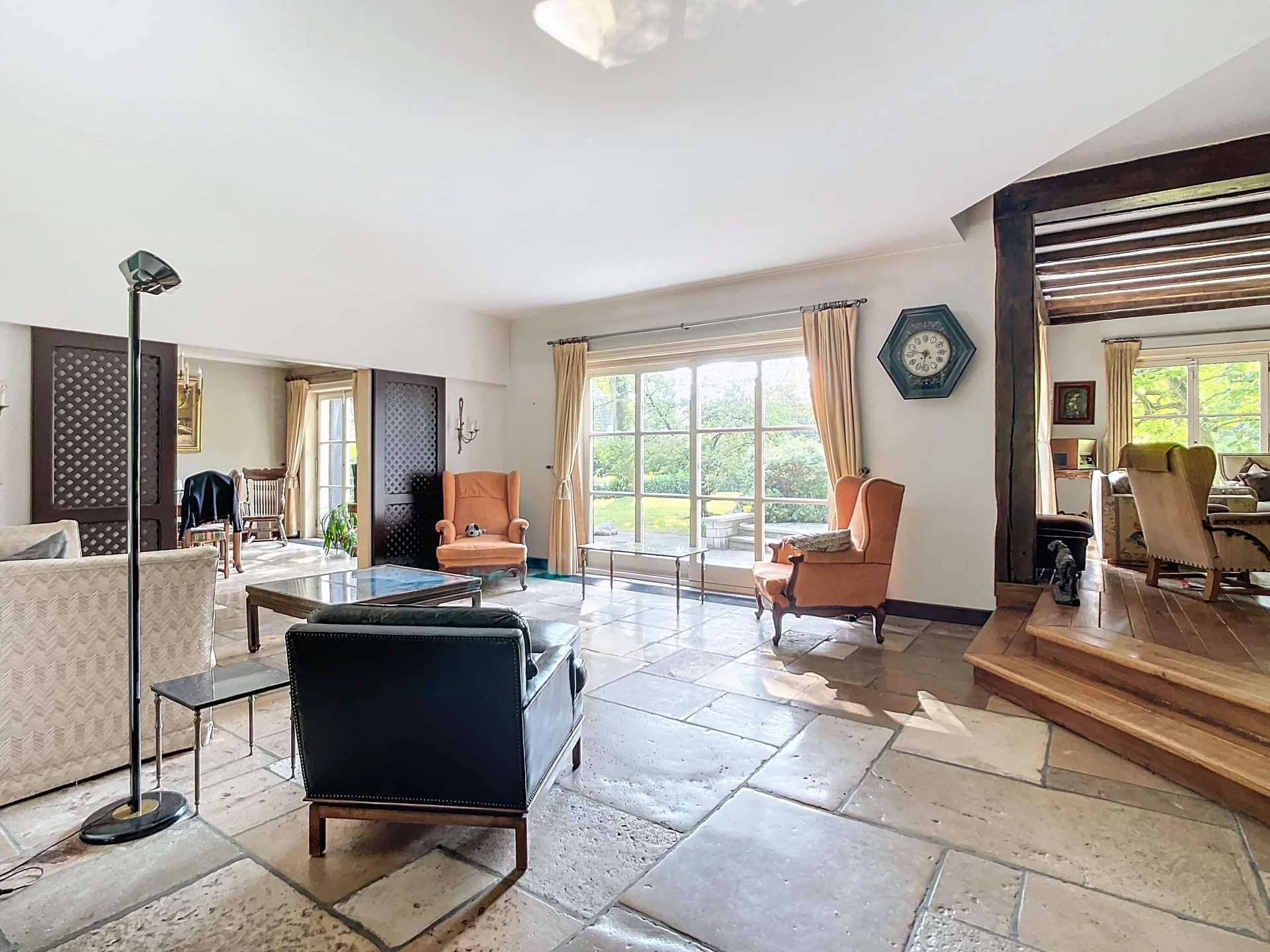 Dans un quartier résidentiel prisé, à deux pas de la Forêt de Soignes, des transports en commun et du Royal Golf Club de Ravenstein, découvrez cette spacieuse villa de ±775 m² (±540 m² habitables), érigée en 1979 sur un terrain orienté sud-ouest de ±28,6 ares. Parfaitement pensée pour une vie familiale, elle offre au rez-de-chaussée : un hall d’entrée, deux salons, une salle à manger, une vaste cuisine, un bureau (avec possibilité d’y ajouter une salle d’eau), ainsi qu’un débarras. Les pièces de vie bénéficient d’un accès direct au jardin et à la piscine. À l'étage : quatre chambres, un grand studio avec terrasse (aménageable en plusieurs chambres), un dressing, trois salles d’eau et un sauna. Caves avec salle d’eau d’appoint, vaste espace aménagé auparavant en conciergerie, grenier aménageable, garage pour trois voitures et parking extérieur pour 4 à 5 véhicules. PEB : D (304 kWh/m²/an) – Libre à l’acte. Contactez-nous pour une visite 02 880 15 17 Les informations et mesures sont données à titre indicatif et non contractuelles.