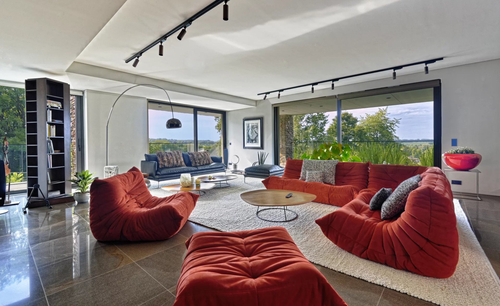 Située sur la colline de Biez, au vert et au calme, à seulement 30 minutes de Bruxelles, cette propriété rare développe une architecture contemporaine de très haut standing, parfaitement intégrée dans un environnement naturel et villageois. L’ensemble s’étend sur un terrain de 1,1054 hectare et totalise 1.406 m² bâtis selon PEB, comprenant une double villa jumelée (habitations A et B), des espaces communs de prestige, trois terrasses totalisant ± 450 m². Composition de l'habitation A : hall d'entrée, salon, salle à manger avec cuisine, 3 chambres avec salles d’eau privatives, bureau, terrasses. Habitation B : Vastes espaces de réception, hall d'entrée, cuisine, + cusisine professionnelle, 3 chambres avec salles d’eau privatives, bureau, terrasses. Espaces communs : Piscine intérieure avec couloir de nage et débordement, salle de sport entièrement équipée, salle de billard, home cinéma à l’acoustique professionnelle, buanderie technique. Matériaux et finitions sur mesure : pierre naturelle, bois massif, marbre, parquet bois debout... Divers : PEB B, microstation d’épuration, récupération des eaux de pluie, de nombreux parkings et garages privatifs. Vient parfaire le tout un jardin paysager agrémenté d'une serre, d'un verger, d'un étang et d'un sous-bois. Une propriété polyvalente, idéale pour un logement kangourou ou intergénérationnel, une maison de représentation, un projet de bien-être, paramédical ou artistique haut de gamme. Un bien unique, alliant volumes exceptionnels, intimité, confort absolu et flexibilité d’usage.