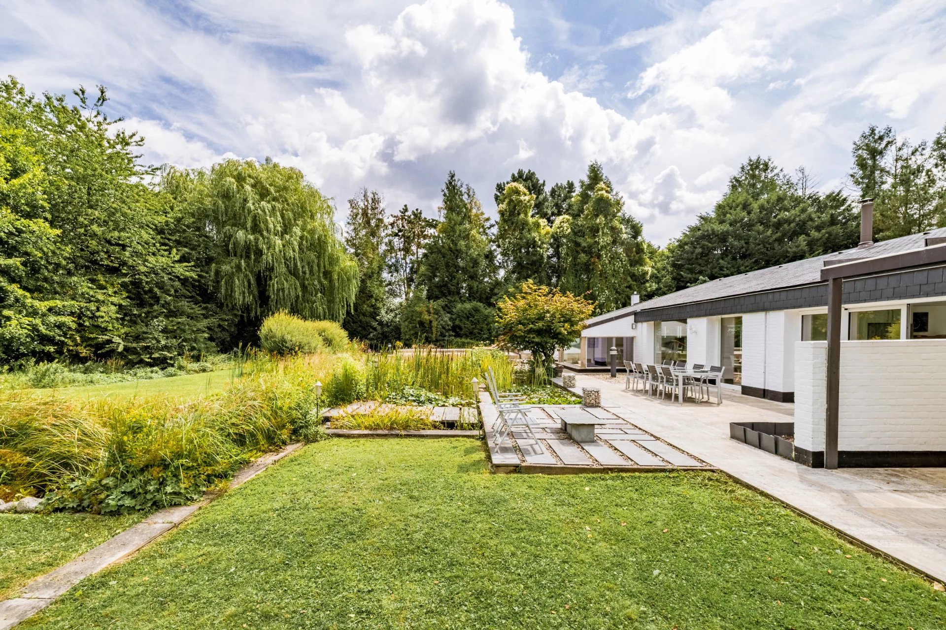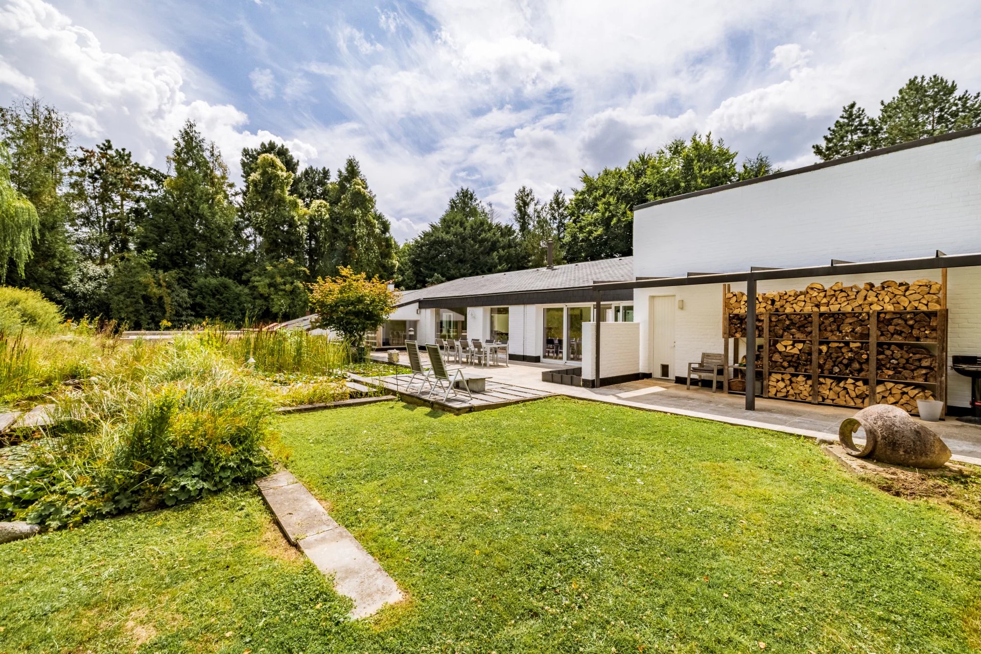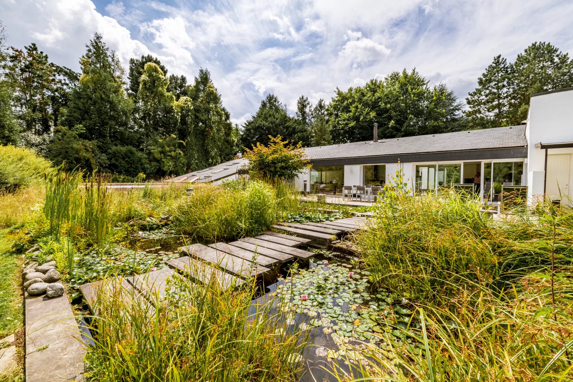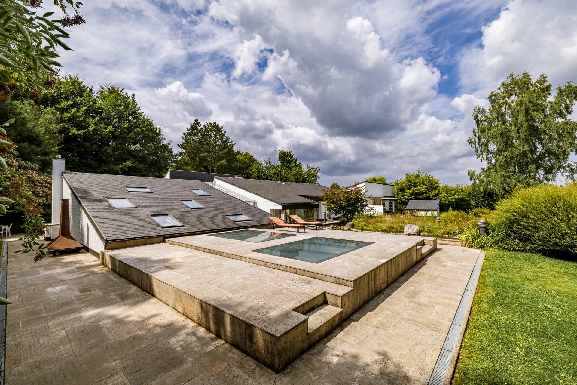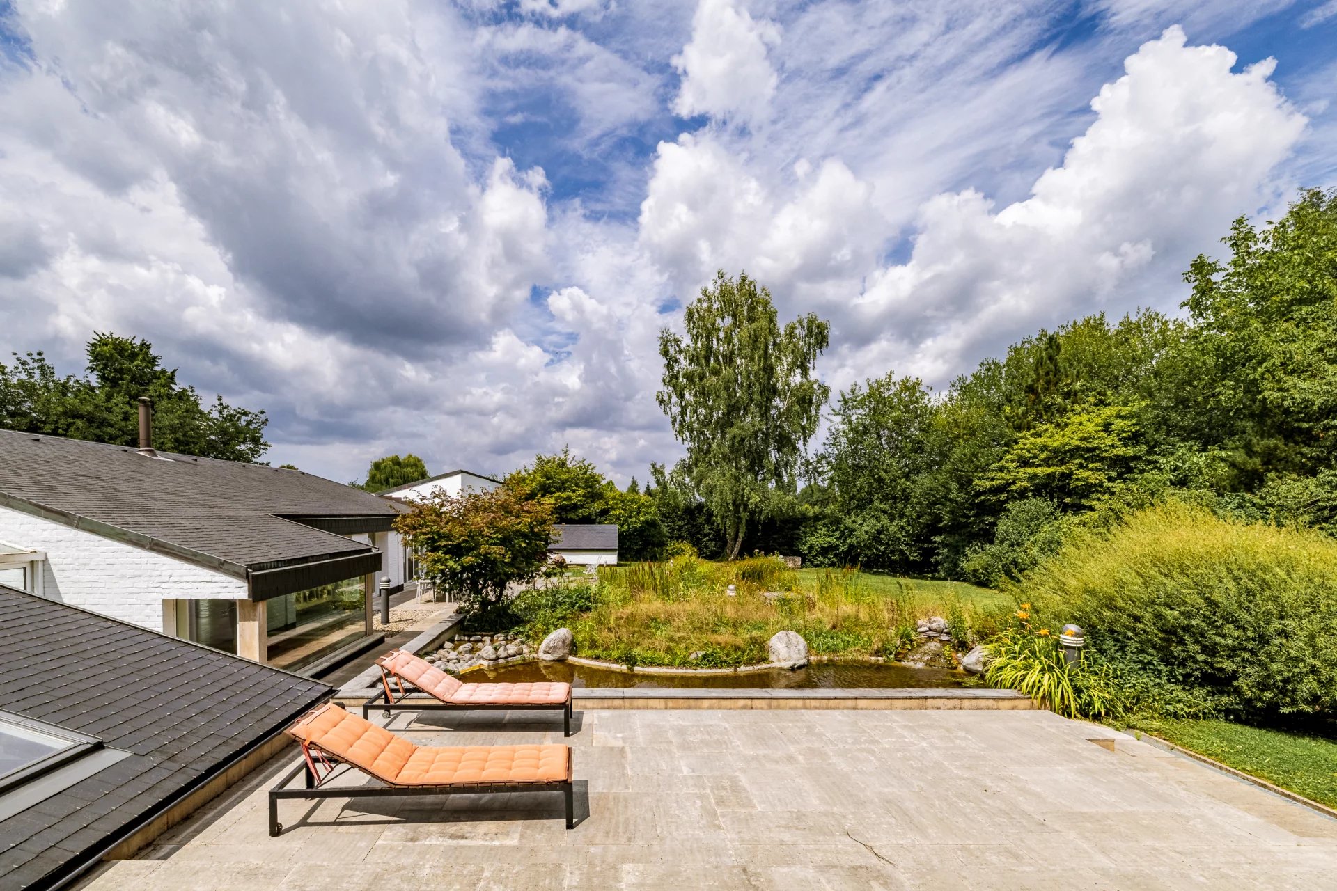 Située dans un écrin de verdure, à l’abri des regards, cette villa d’architecte conjugue calme, intimité et accessibilité. Implantée sur une parcelle paysagée de ±59 ares, elle bénéficie d’un environnement serein, tout en restant proche des facilités, des transports en commun et du centre de Hoeilaart. Développant une surface habitable d’environ 600 m², la maison se compose comme suit : un vaste hall d’entrée avec vestiaire et toilettes invités, un séjour lumineux d’environ 70 m² avec feu ouvert et grande baie vitrée donnant accès à la terrasse principale orientée plein sud, un bureau/salle de jeux baigné de lumière avec accès à une seconde terrasse équipée d’un espace barbecue, une cuisine entièrement équipée, une suite parentale avec dressing et salle de bains complète, deux chambres supplémentaires avec chacune leur salle de douche, une buanderie, un garage pour trois véhicules, ainsi que deux toilettes séparées. À l’étage, deux chambres supplémentaires viennent compléter l’espace nuit. Aux sous-sol, la maison dispose de vastes caves. Un espace bien-être (à rénover) complète ce bien d’exception, comprenant une piscine intérieure, un sauna, une salle de douche, un vestiaire et des toilettes. Divers : chauffage électrique, plans d’eau, système d’alarme, robot tondeuse, adoucisseur d’eau, toiture en ardoises naturelles. Contactez-nous pour une visite : 02/880.15.17 Les informations et mesures sont données à titre indicatif et non contractuelles.