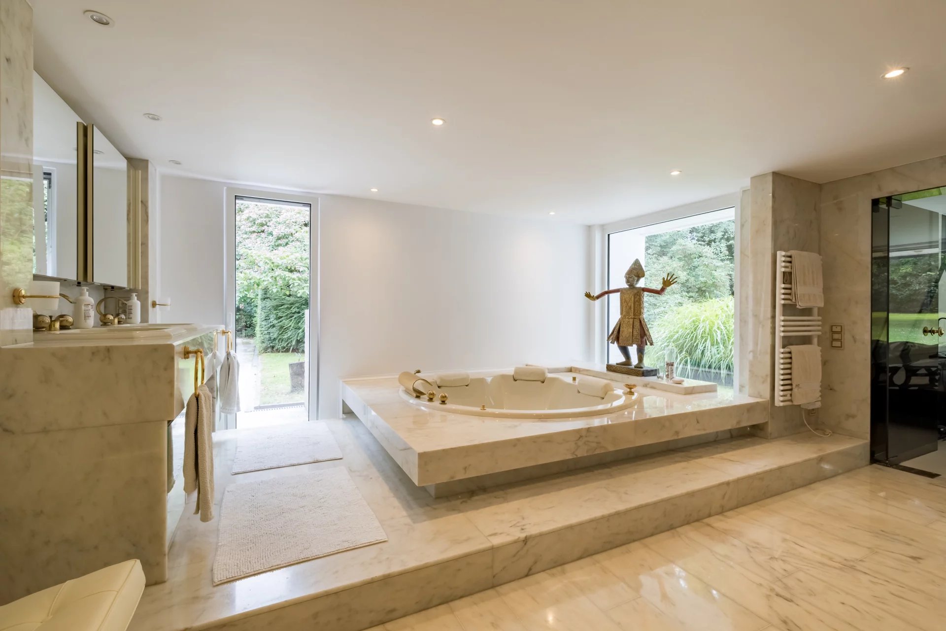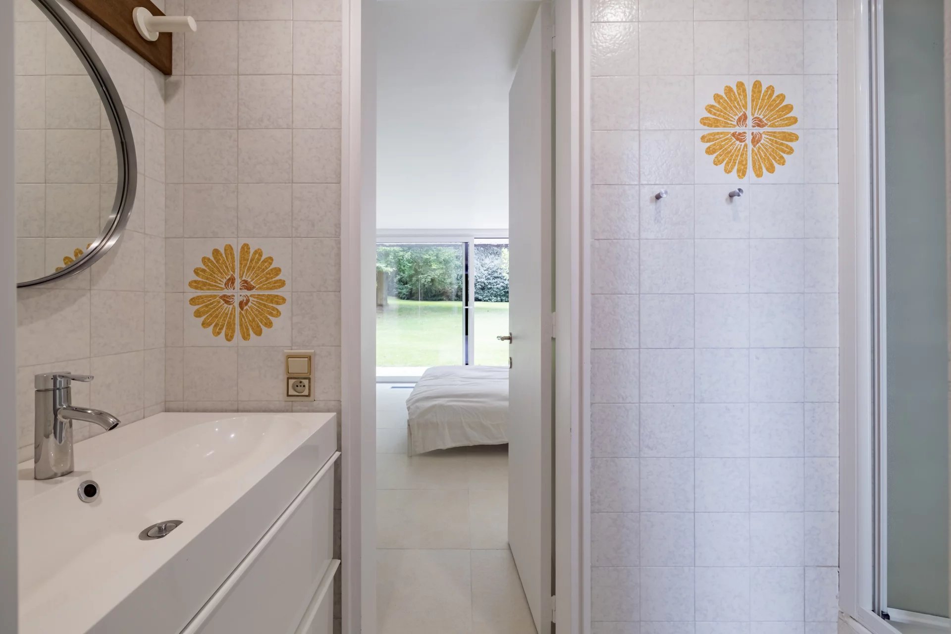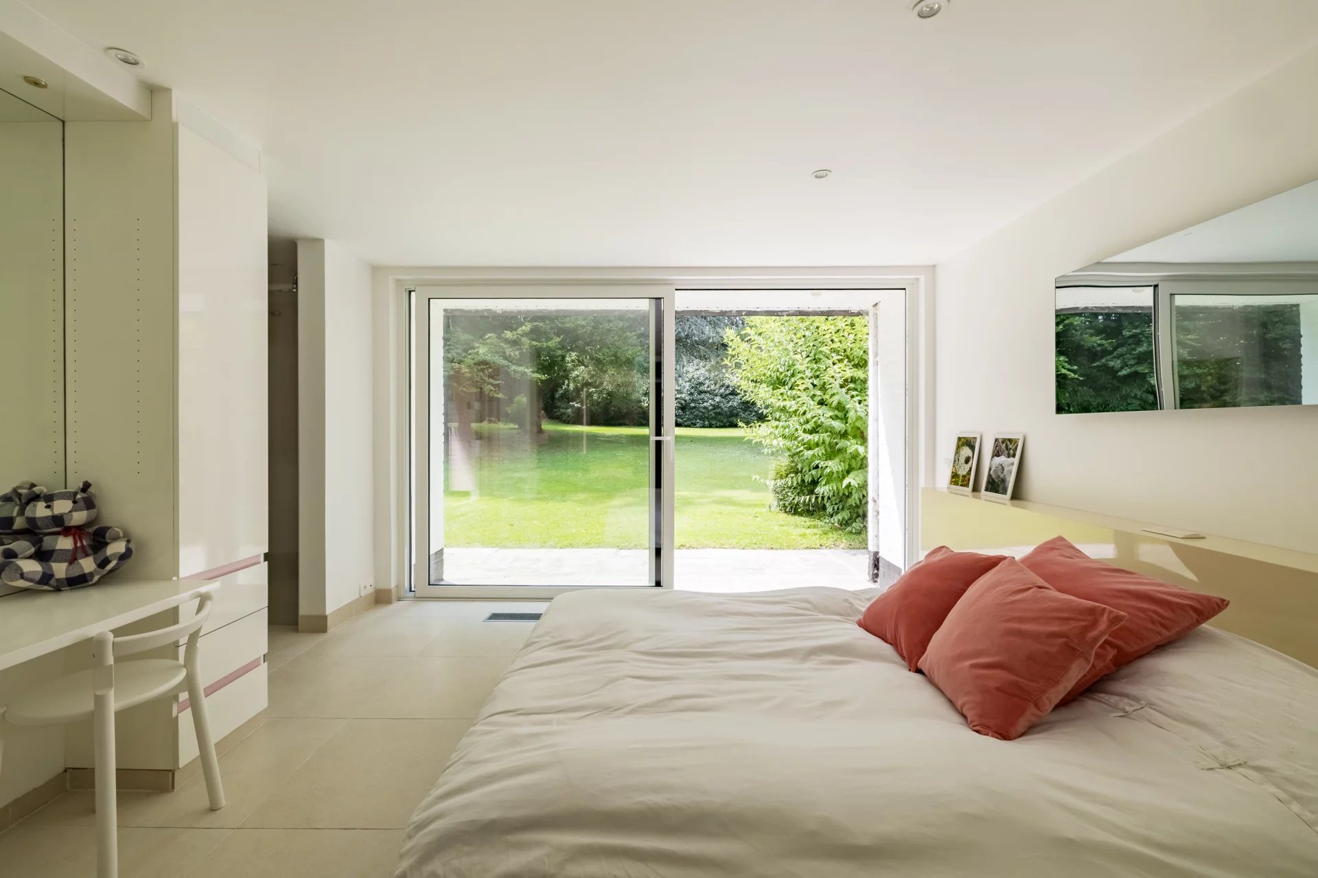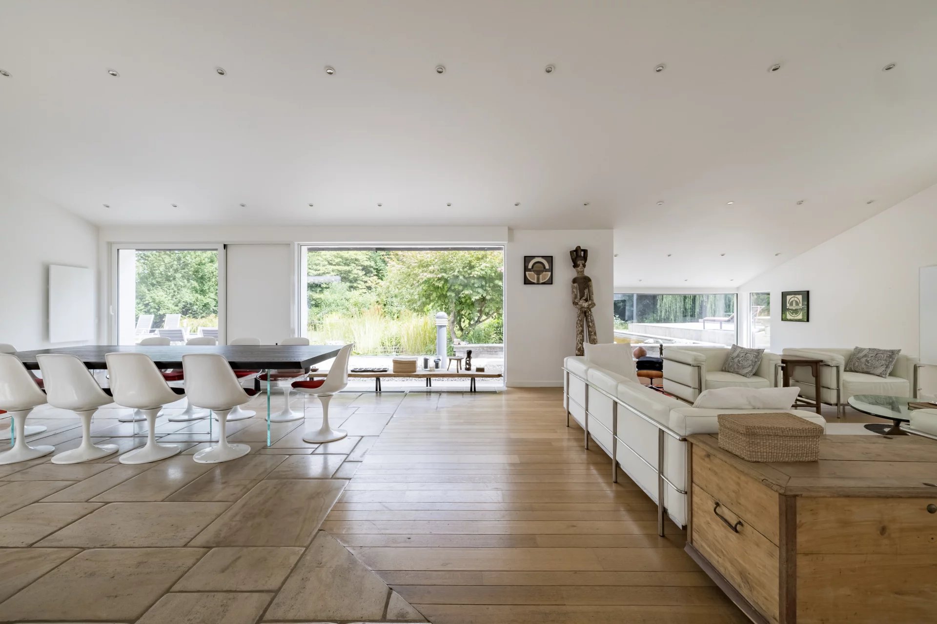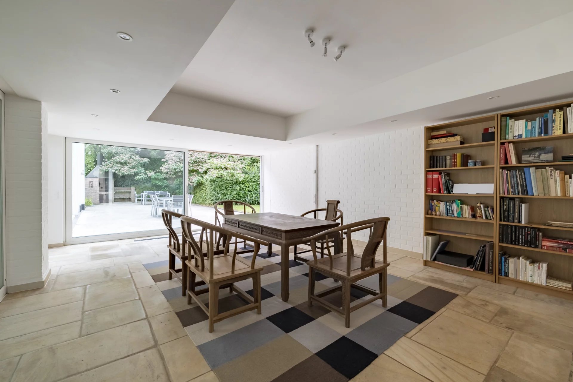 Située dans un écrin de verdure, à l’abri des regards, cette villa d’architecte conjugue calme, intimité et accessibilité. Implantée sur une parcelle paysagée de ±59 ares, elle bénéficie d’un environnement serein, tout en restant proche des facilités, des transports en commun et du centre de Hoeilaart. Développant une surface habitable d’environ 600 m², la maison se compose comme suit : un vaste hall d’entrée avec vestiaire et toilettes invités, un séjour lumineux d’environ 70 m² avec feu ouvert et grande baie vitrée donnant accès à la terrasse principale orientée plein sud, un bureau/salle de jeux baigné de lumière avec accès à une seconde terrasse équipée d’un espace barbecue, une cuisine entièrement équipée, une suite parentale avec dressing et salle de bains complète, deux chambres supplémentaires avec chacune leur salle de douche, une buanderie, un garage pour trois véhicules, ainsi que deux toilettes séparées. À l’étage, deux chambres supplémentaires viennent compléter l’espace nuit. Aux sous-sol, la maison dispose de vastes caves. Un espace bien-être (à rénover) complète ce bien d’exception, comprenant une piscine intérieure, un sauna, une salle de douche, un vestiaire et des toilettes. Divers : chauffage électrique, plans d’eau, système d’alarme, robot tondeuse, adoucisseur d’eau, toiture en ardoises naturelles. Contactez-nous pour une visite : 02/880.15.17 Les informations et mesures sont données à titre indicatif et non contractuelles.