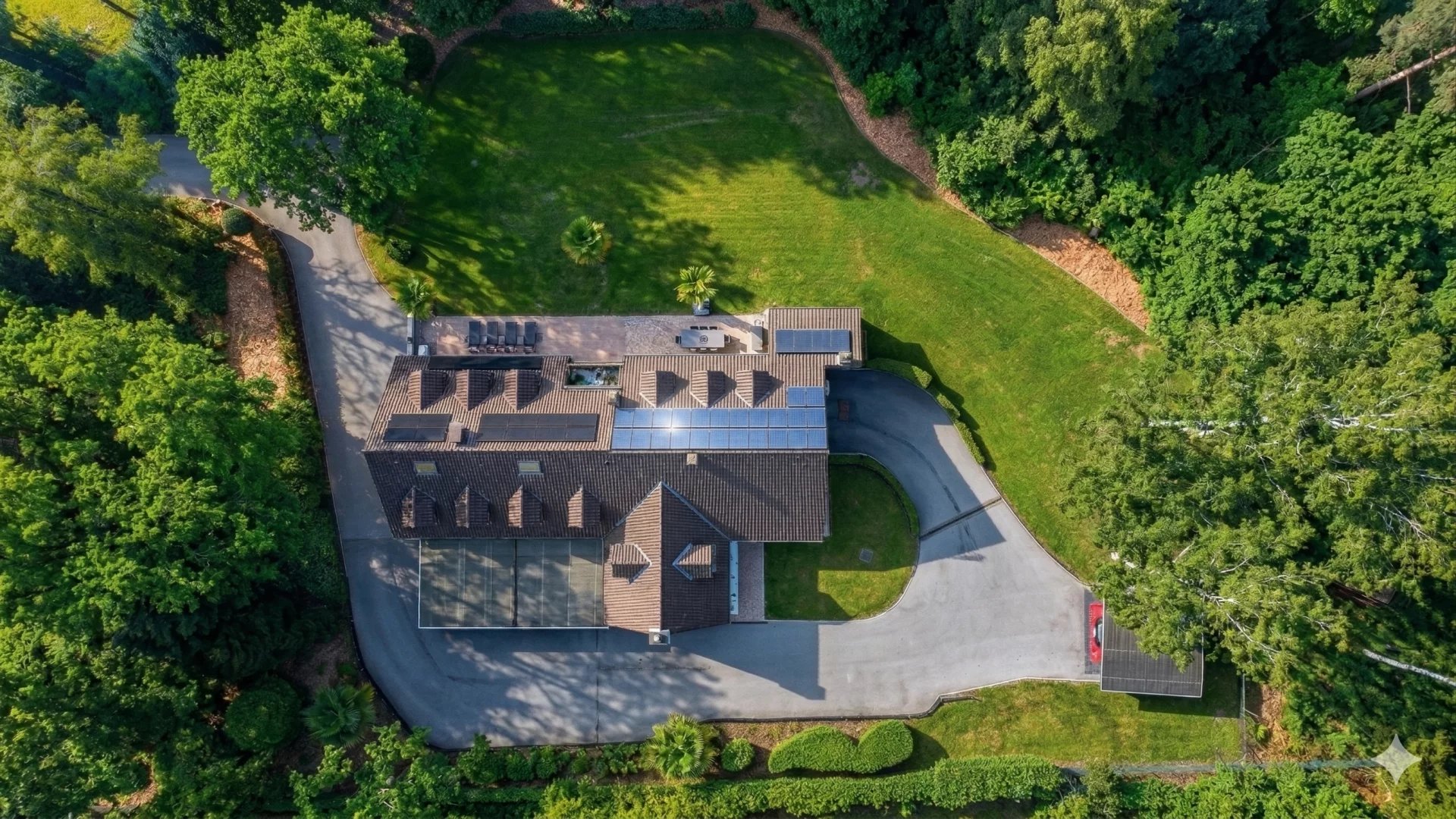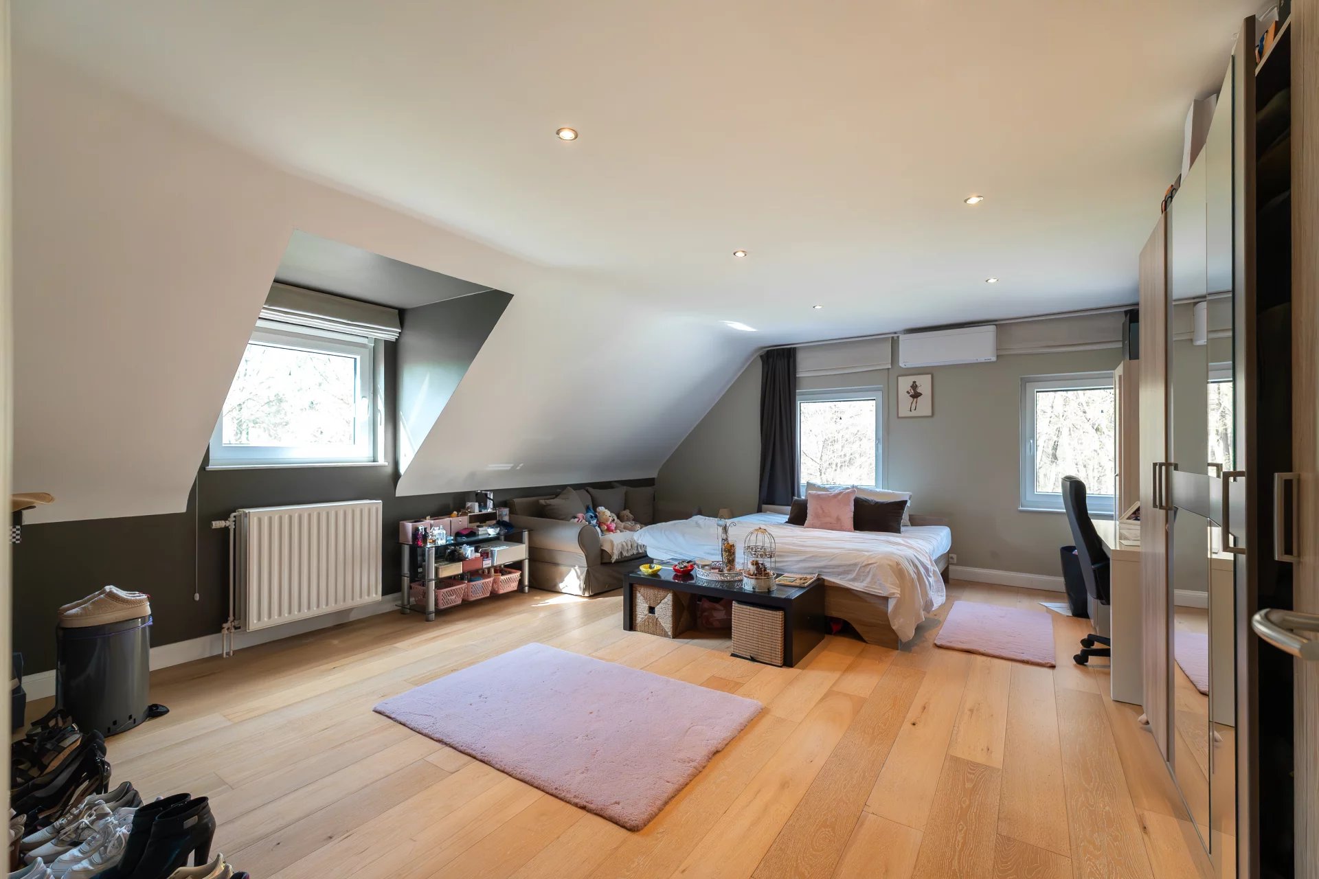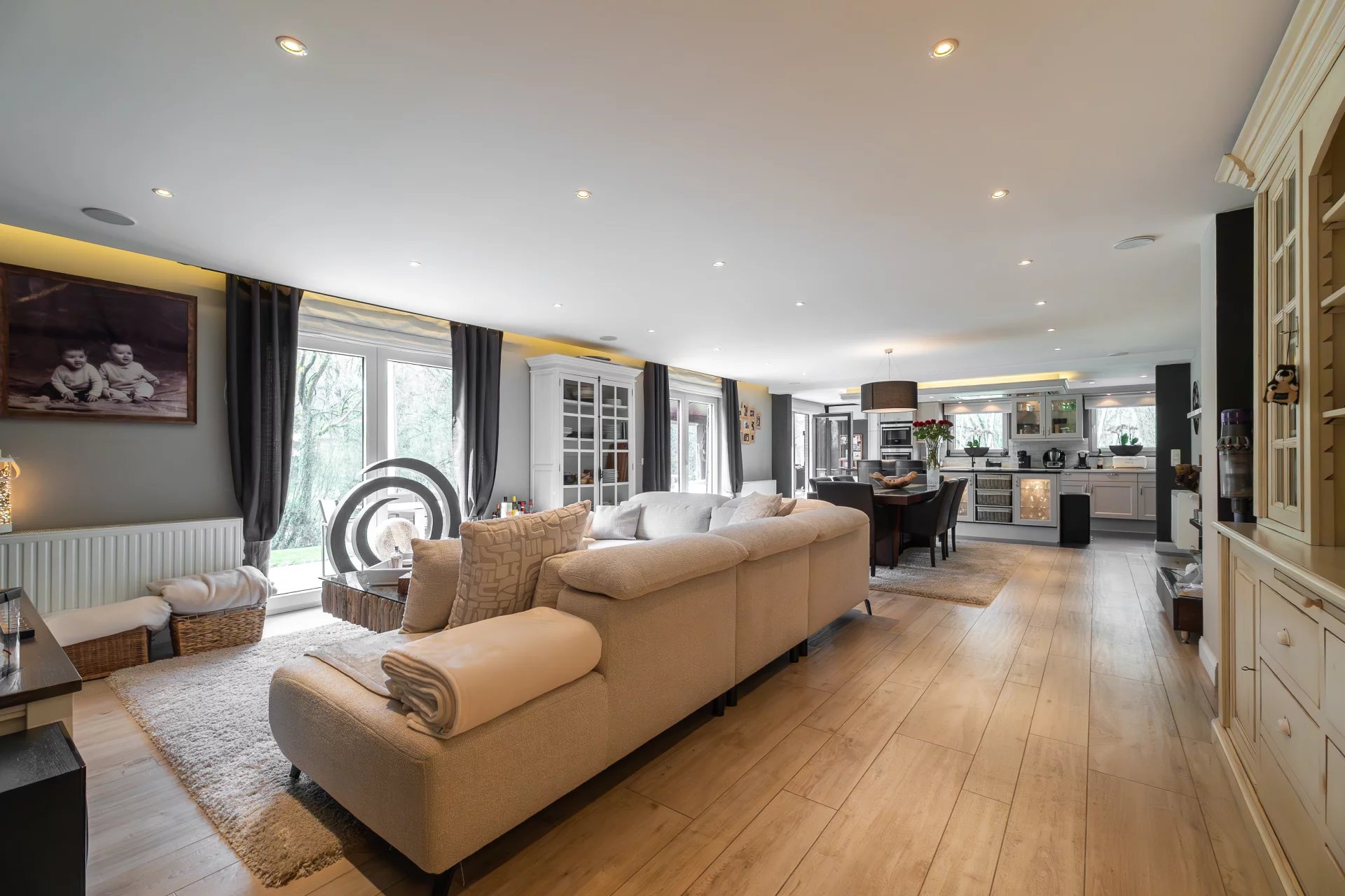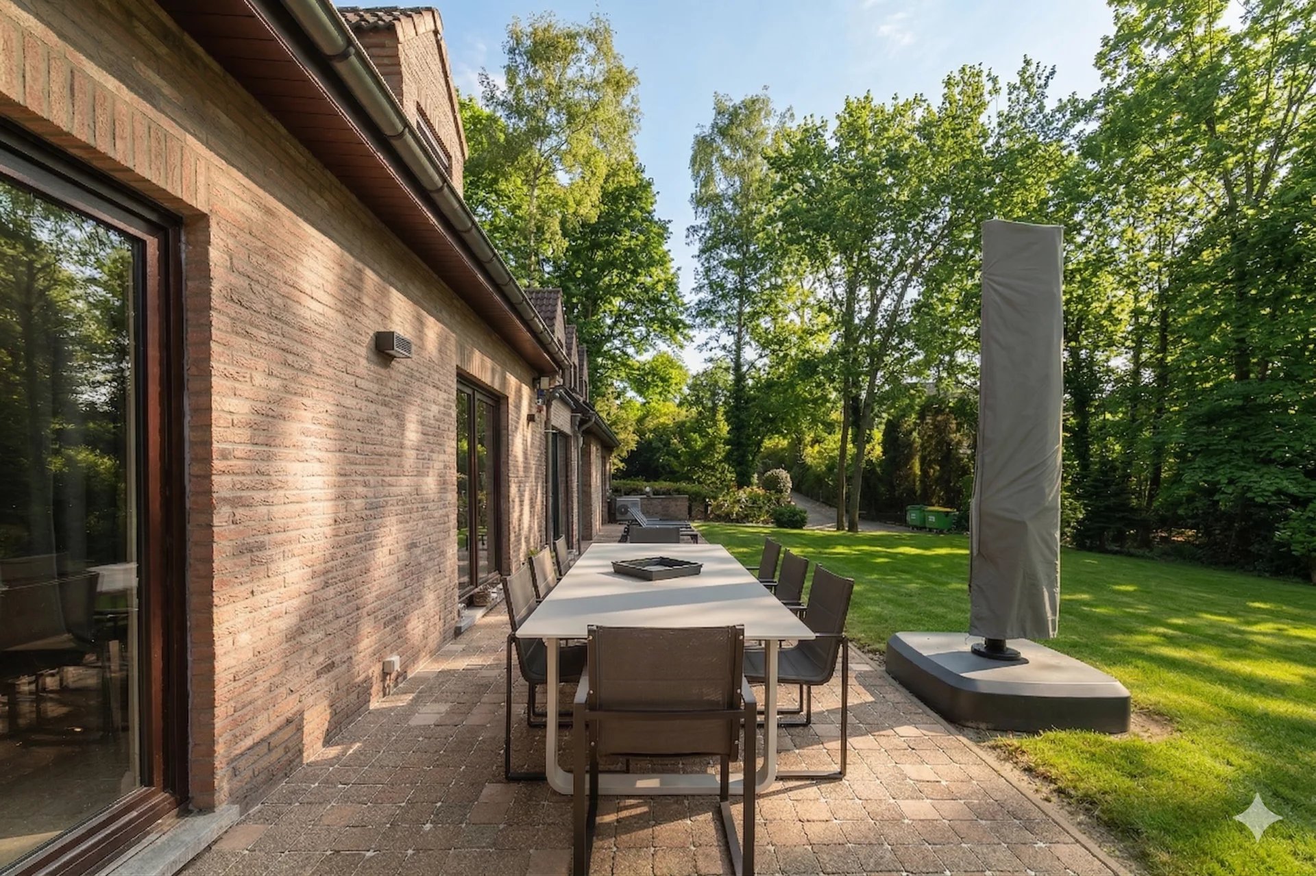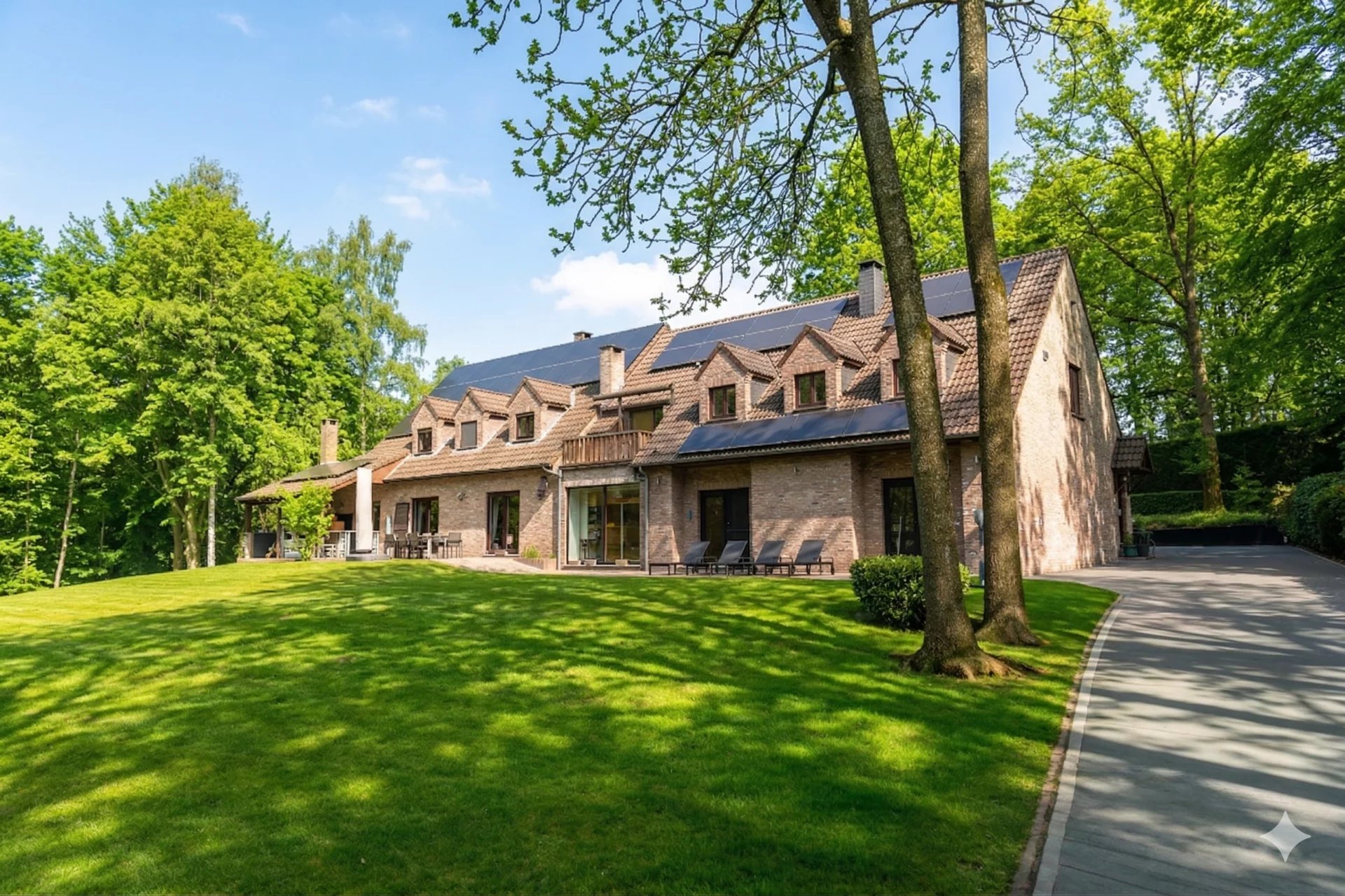 OPTION - Nichée dans le Bois du Hautmont, sur un terrain de fond arboré de ± 76 ares, villa brabançonne entièrement rénovée en 2024 développant ± 583m² selon PEB. Elle comprend 4 chambres, 2 salles de bains ainsi qu’un appartement indépendant de ± 100 m² avec 2 chambres et entrée privative. Le hall d’entrée s’ouvre sur un séjour de ± 90 m² prolongé par une cuisine ouverte entièrement équipée. Deux salons distincts complètent le rez-de-chaussée : un salon d’été et un salon d’hiver avec cheminée, actuellement aménagé en bureau. À l’étage, trois chambres lumineuses se partagent une salle de bains ; la suite parentale dispose d’un dressing et d’une salle d’eau. Toutes les pièces bénéficient d’une climatisation réversible. L’appartement indépendant propose séjour, cuisine, terrasse, buanderie et grenier, idéal pour profession libérale ou logement de service. L’espace bien-être comprend piscine chauffée (11 x 5,5 m), sauna, salle de sport équipée et cuisine d’été. Terrasse plein sud de ± 106 m² avec salon couvert, bar et barbecue. PEB B. Isolation renforcée, nouveaux châssis, 44 panneaux solaires, chaudière Buderus, boiler thermodynamique. Garage 4 voitures, 6 carports, domotique complète, portail automatique. Informations et mesures données à titre indicatif et non contractuelles.