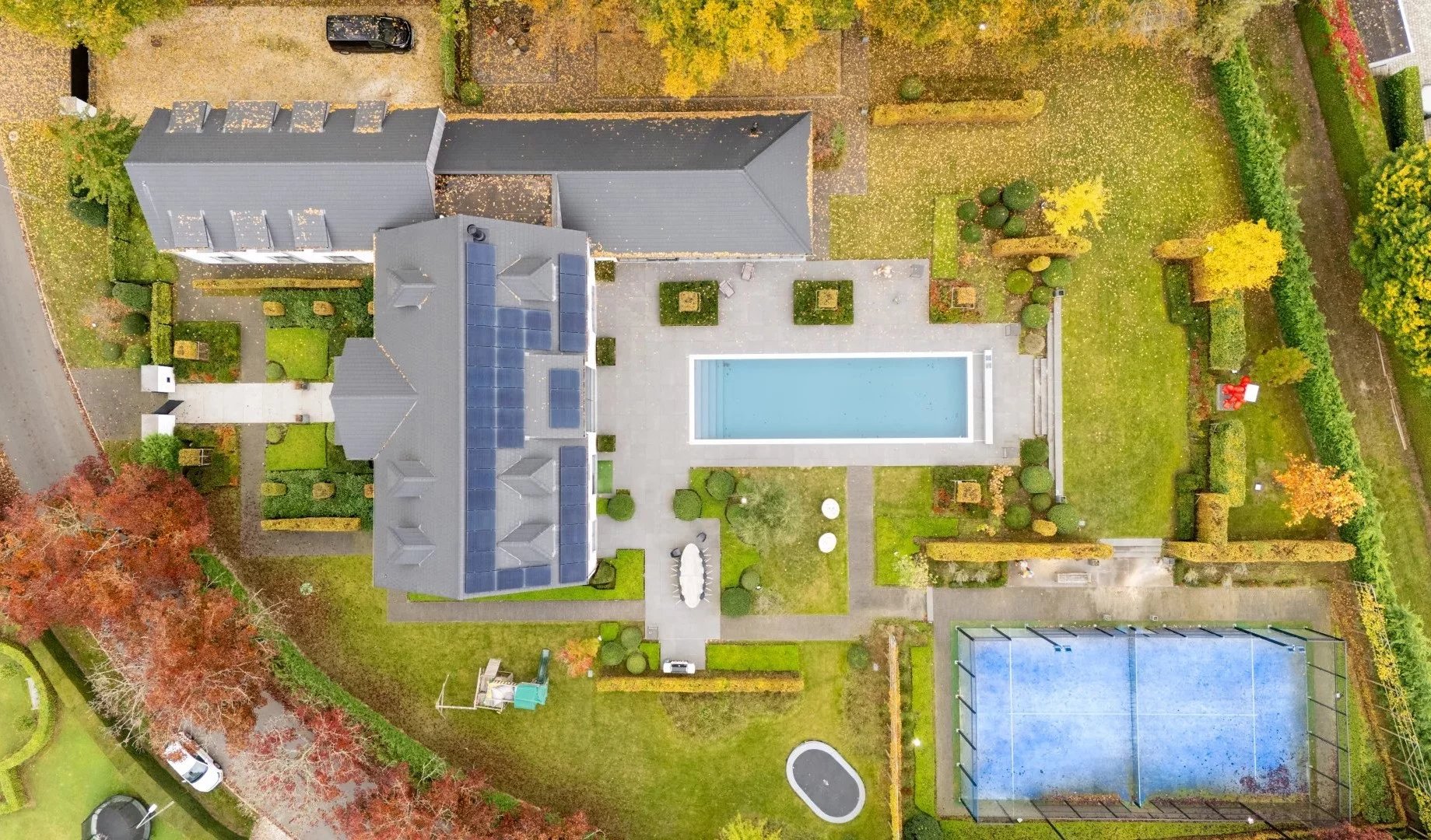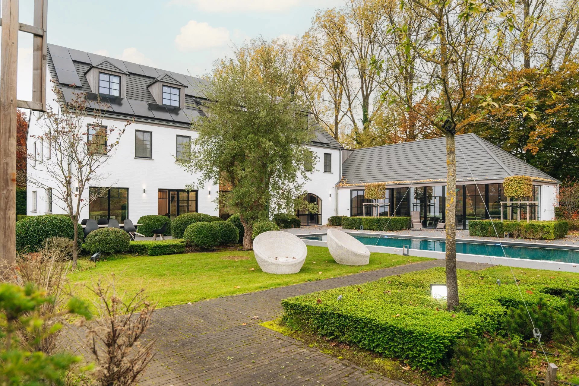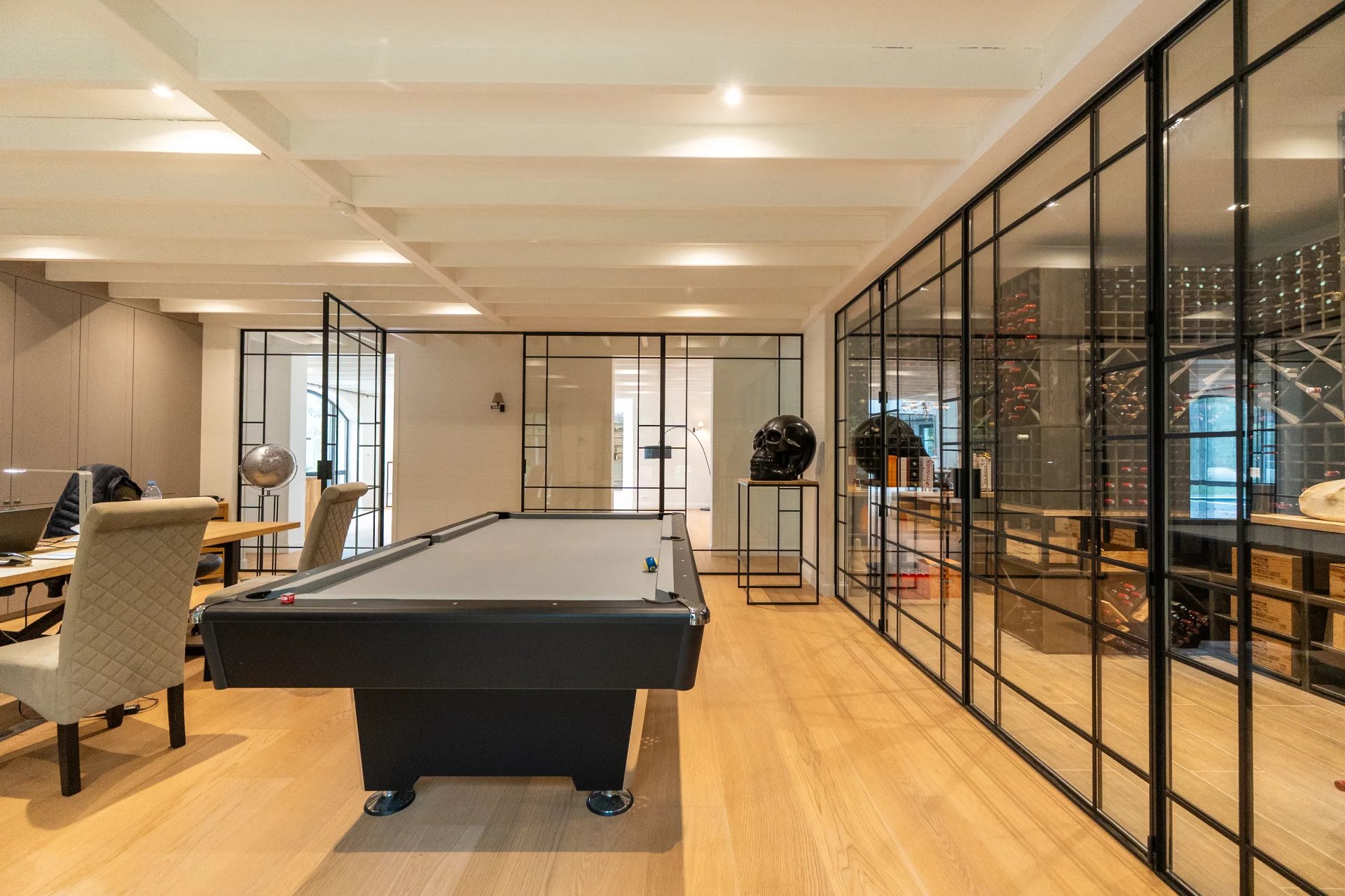 Nichée dans l’environnement privilégié du Golf de Sept Fontaines, cette propriété contemporaine érigée en 2022 se distingue par son design moderne et ses nombreux équipements de loisirs. Dès l’entrée, un hall agrémenté d’un vestiaire mène vers un espace de vie baigné de lumière, regroupant le salon, la salle à manger et une cuisine ouverte. Un bureau élégant, complété par une cave à vin vitrée et climatisée, ainsi qu’une pièce multifonctionnelle dédiée aux loisirs, viennent compléter ce niveau. À l'étage, chaque chambre bénéficie de sa propre salle de douche et de rangements intégrés sous forme de dressings. La suite parentale, quant à elle, offre un confort supplémentaire grâce à un dressing séparé et une salle de bain équipée de deux douches. Le dernier niveau propose de deux pièces polyvalentes, idéales comme salles de jeux ou chambres supplémentaires. Viennent parfaire le tout aux sous-sols un terrain de mini foot avec vestiaires, et un terrain de pétanque et des locaux techniques. A l'extérieur, vous découvrirez de grandes terrasses, une piscine chauffée et un terrain de padel. Pour découvrir cette propriété hors du commun, n'hésitez pas à nous contacter au 02/880/15.17