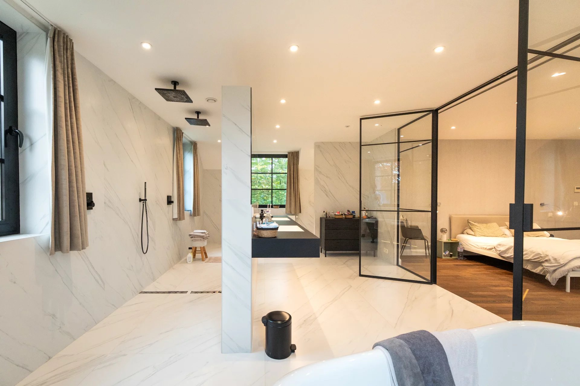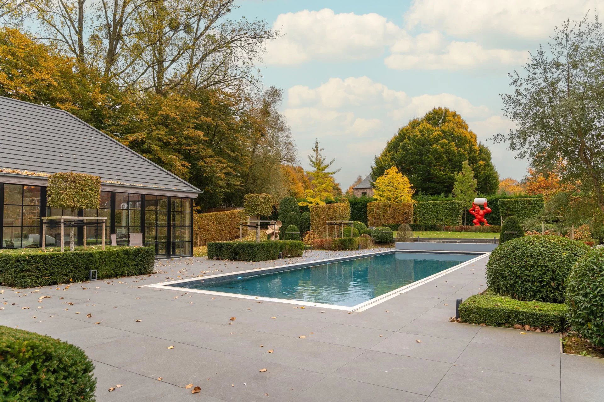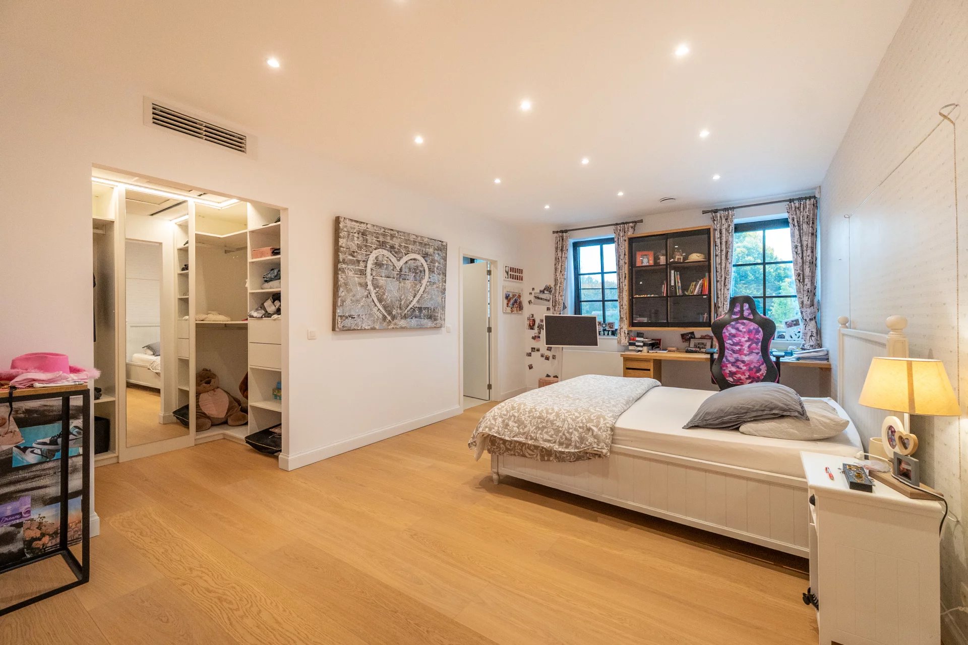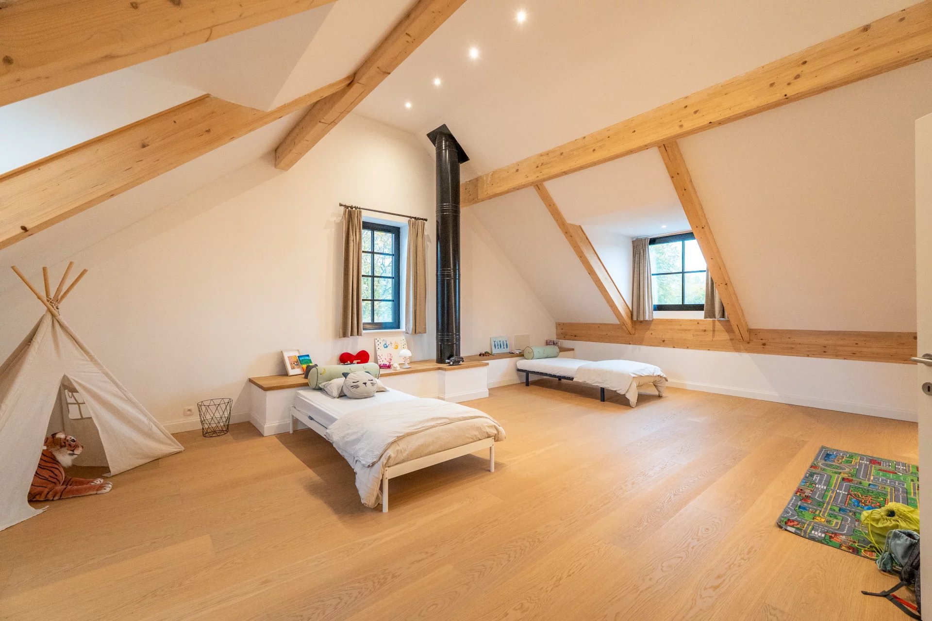 Nichée dans l’environnement privilégié du Golf de Sept Fontaines, cette propriété contemporaine érigée en 2022 se distingue par son design moderne et ses nombreux équipements de loisirs. Dès l’entrée, un hall agrémenté d’un vestiaire mène vers un espace de vie baigné de lumière, regroupant le salon, la salle à manger et une cuisine ouverte. Un bureau élégant, complété par une cave à vin vitrée et climatisée, ainsi qu’une pièce multifonctionnelle dédiée aux loisirs, viennent compléter ce niveau. À l'étage, chaque chambre bénéficie de sa propre salle de douche et de rangements intégrés sous forme de dressings. La suite parentale, quant à elle, offre un confort supplémentaire grâce à un dressing séparé et une salle de bain équipée de deux douches. Le dernier niveau propose de deux pièces polyvalentes, idéales comme salles de jeux ou chambres supplémentaires. Viennent parfaire le tout aux sous-sols un terrain de mini foot avec vestiaires, et un terrain de pétanque et des locaux techniques. A l'extérieur, vous découvrirez de grandes terrasses, une piscine chauffée et un terrain de padel. Pour découvrir cette propriété hors du commun, n'hésitez pas à nous contacter au 02/880/15.17