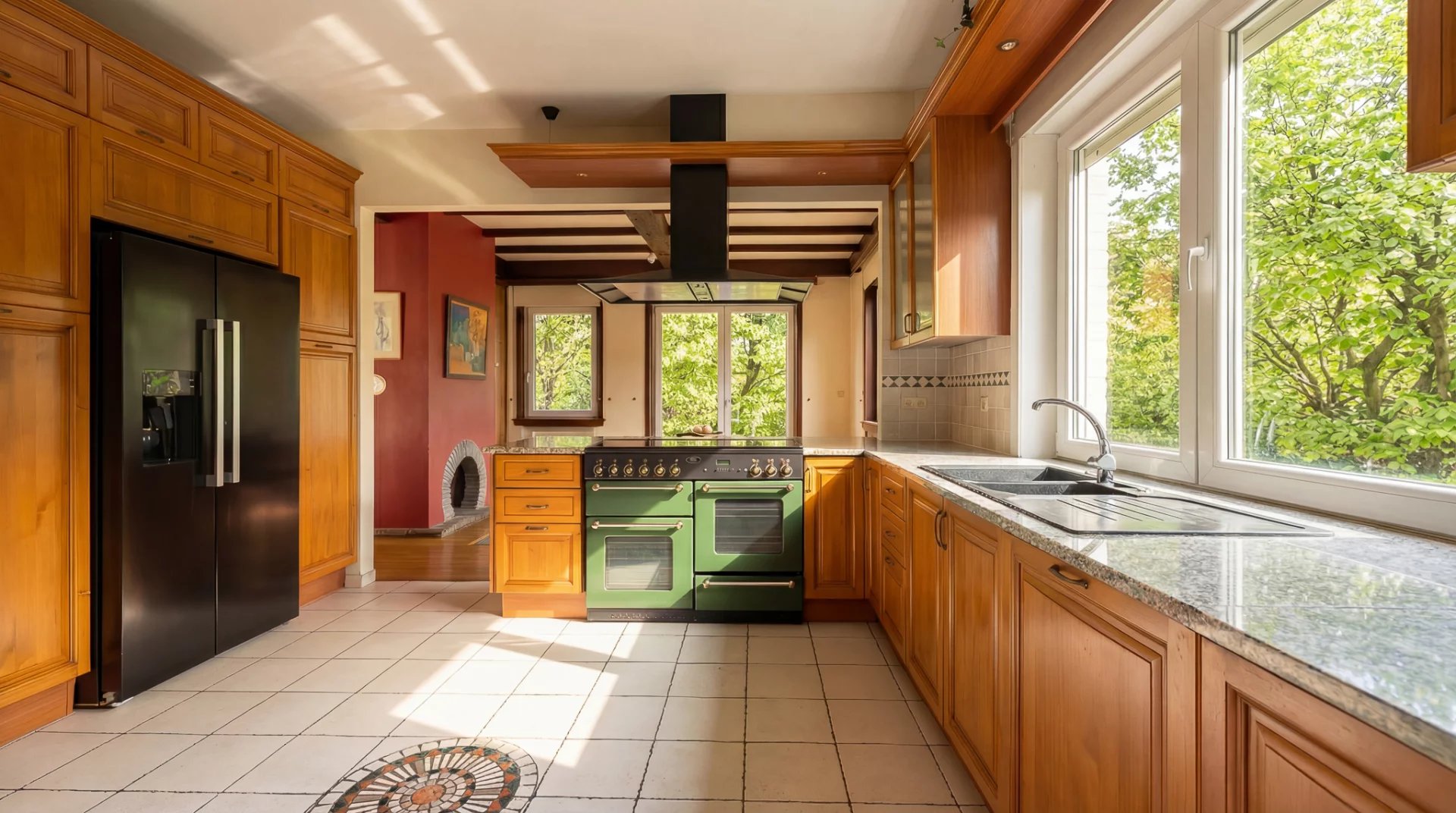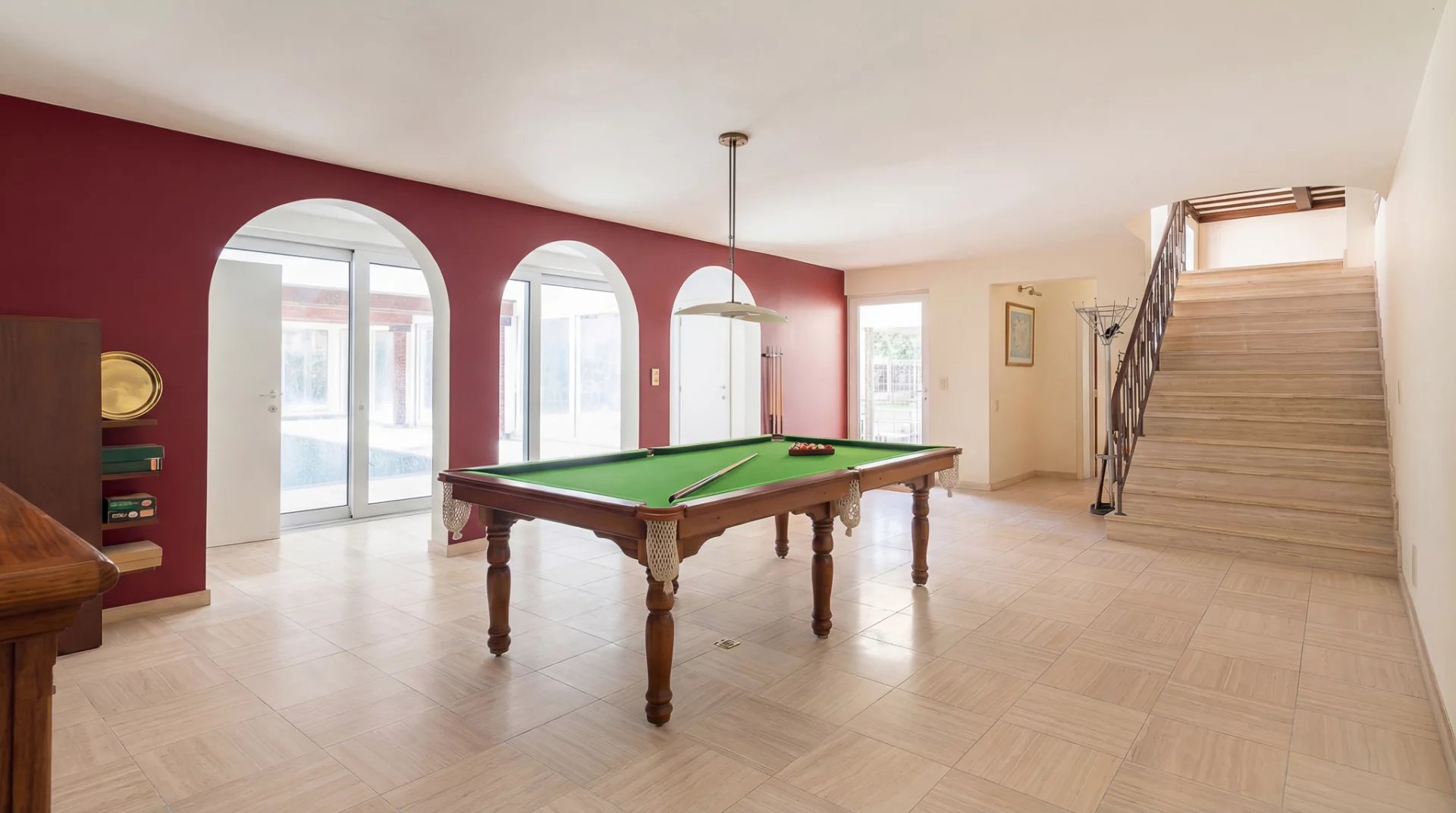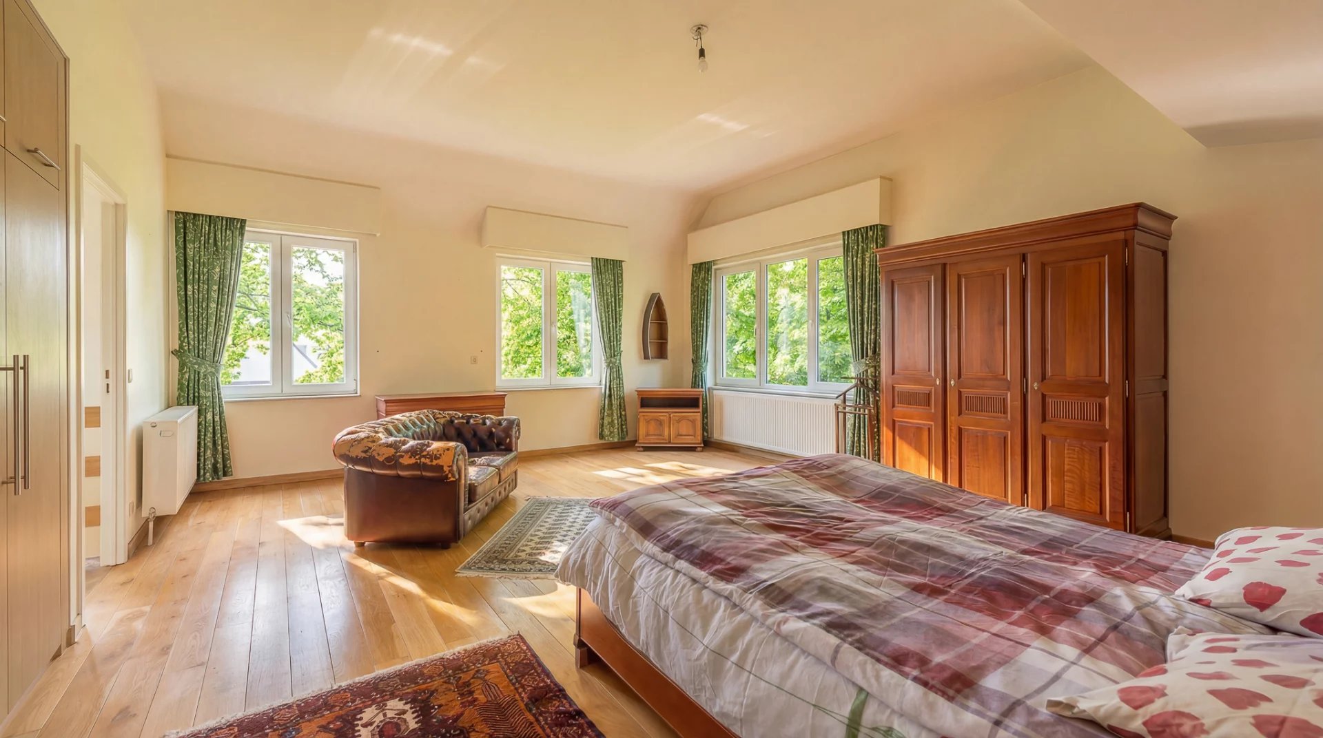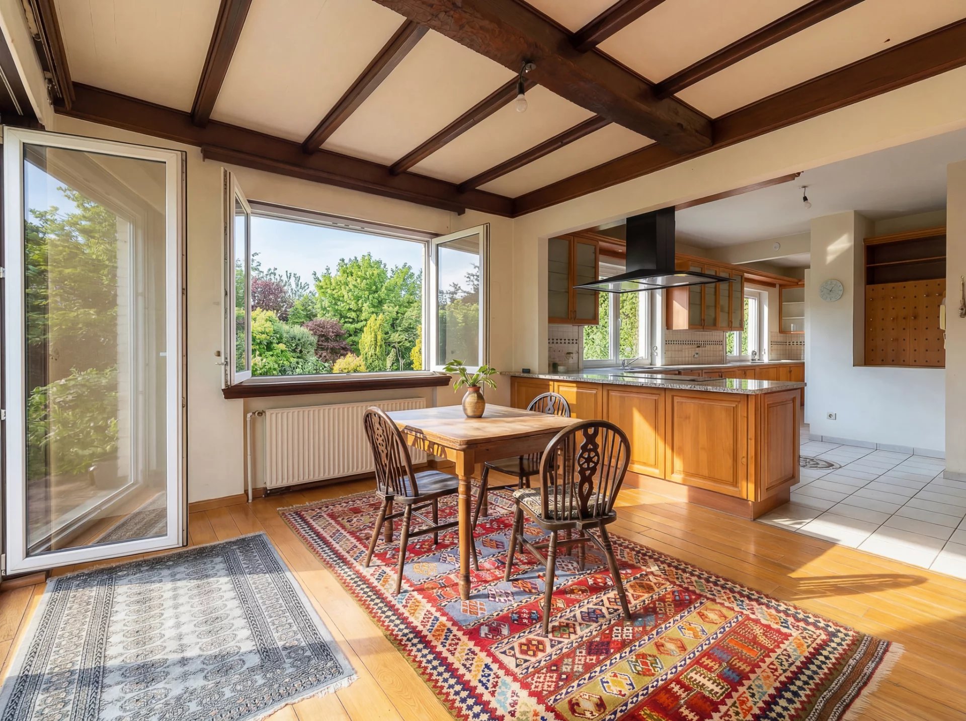 Située à Overijse, dans le quartier de Vuurgat, cette villa de caractère développe une superficie totale d’environ 530 m². Construite en 1962 et agrandie en 1992 et 2007, elle propose quatre chambres et quatre salles de bains, ainsi qu’un studio, dans un environnement verdoyant à proximité des commodités. Le hall d’entrée, avec vestiaire, mène à deux espaces bureau, dont un de grande dimension, adapté à une activité professionnelle. Les pièces de réception comprennent un salon lumineux, une cuisine et une salle à manger, bénéficiant d’une vue dégagée sur le jardin. À l’étage, l’espace nuit se compose de quatre chambres et de trois salles d’eau. Le sous-sol accueille une seconde salle à manger / salle de jeux, un appartement indépendant avec chambre, salle de douche et kitchenette, ainsi qu’une piscine intérieure rénovée en 2009. Ce niveau comprend également un double garage, une buanderie, un espace douche pour animaux, une chaufferie et une cave à vin. Divers : PEB C, chauffage central au gaz, chaudière Vaillant récente (± 5 ans), électricité conforme. Châssis remplacés en 2007 et 2021. Rafraîchissements à prévoir. Informations données à titre indicatif et non contractuelles.